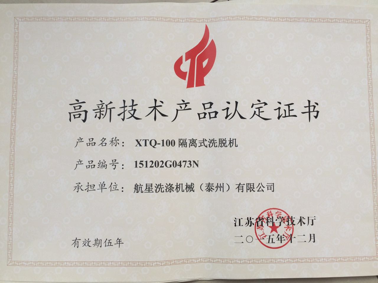 高新證書-隔離洗脫機