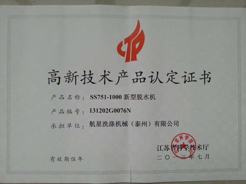 100脫水機高新證書